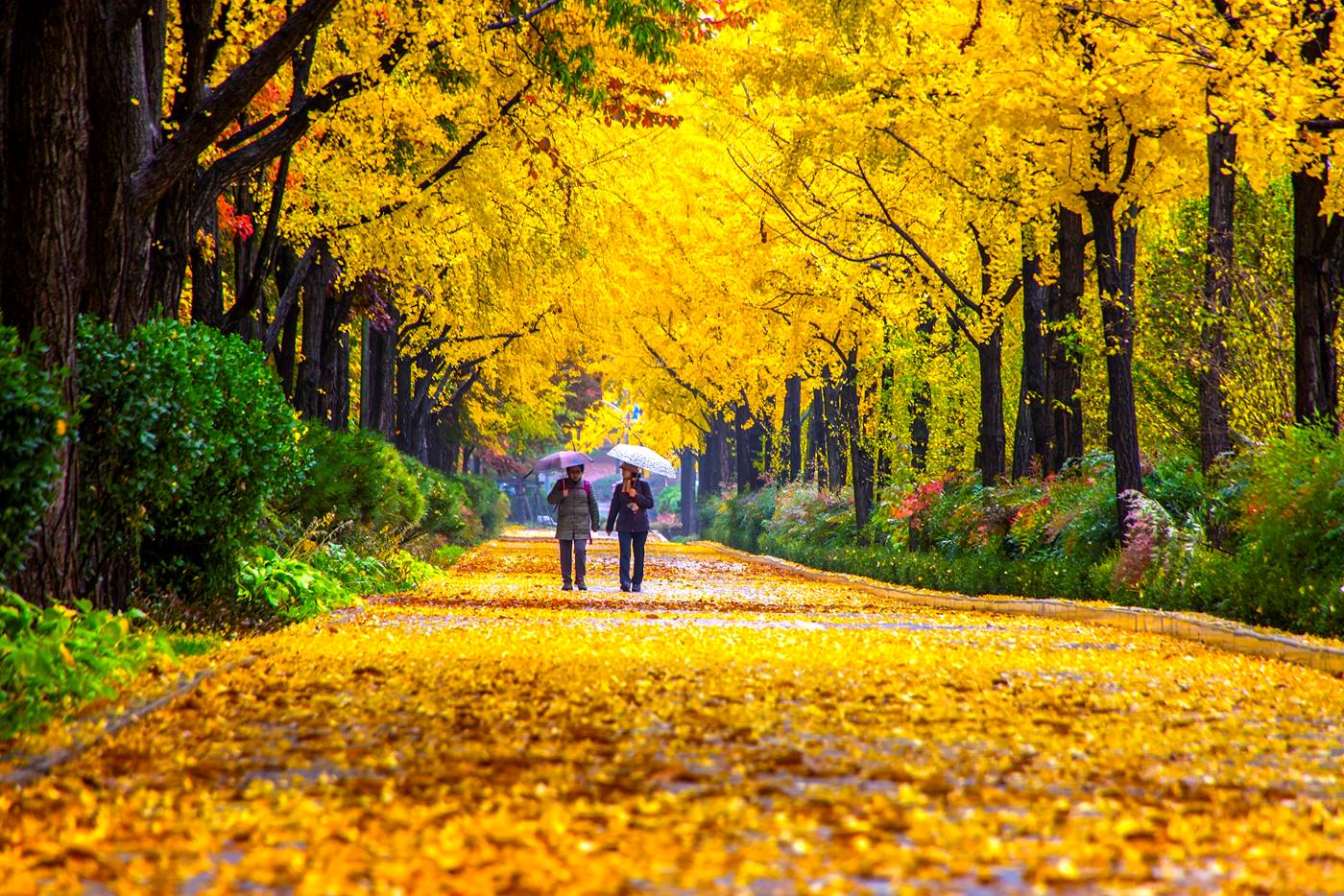 경기도 과천시 대공원 광장로 80번지 일대로 은행나무, 느티나무,메타세쿼이아,벚나무 등의 800주 그루의 2.5Km 거리입니다.청계 호숫가를 한 바퀴도는 둘레길로 벚나무를 비롯한 다양한 수종의 단풍이 어우러져 그야말로 환상적인 풍경을 만드는 곳으로 코끼리열차 운행으로도 즐길 수 있습니다.저녁식사 후 가족과 함께 걷기에 금상첨화의 단풍길입니다.