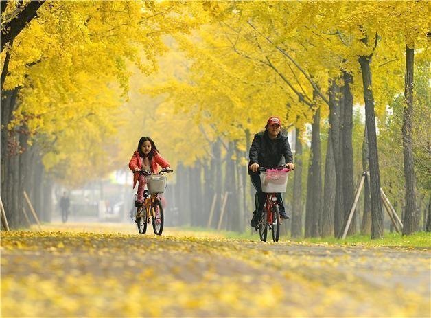 석촌 후수의아름다운 물빛과 어우러진 낙엽의 거리로 장관입니다.